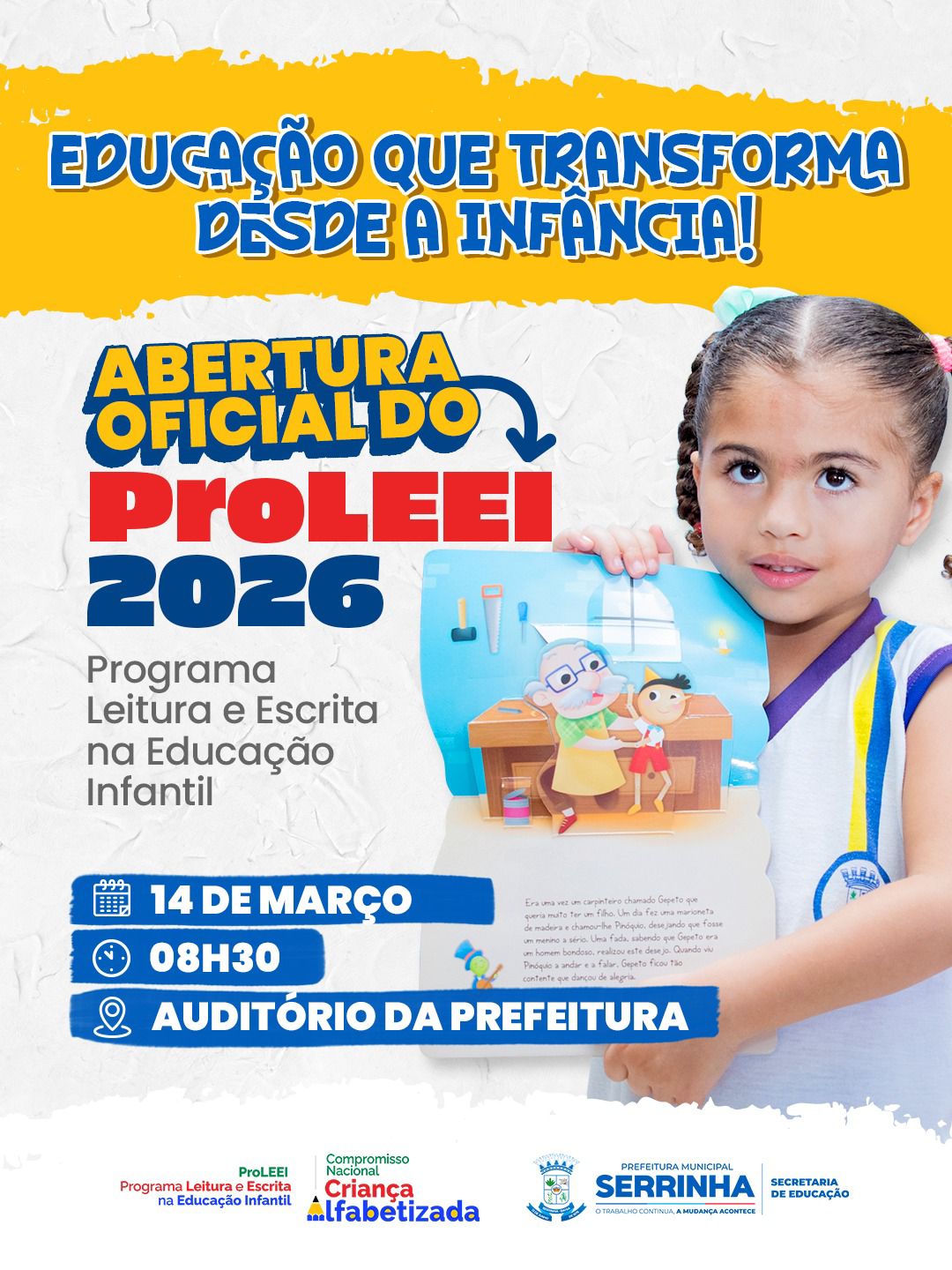 Serrinha se prepara para a abertura oficial do ProLEEI 2026 (Programa Leitura e Escrita na Educação Infantil), uma iniciativa do Governo Federal, desenvolvida pelo Ministério da Educação, voltada à formação continuada dos profissionais que atuam na Educação Infantil, especialmente na pré-escola.