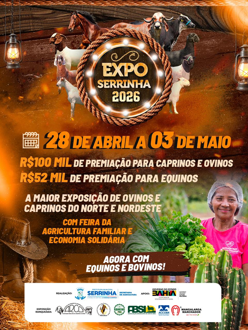 A ExpoSerrinha vem aí ainda maior e com novidades que prometem fortalecer ainda mais o agronegócio regional. Considerada a maior exposição de caprinos e ovinos do Norte e Nordeste, a feira será realizada entre os dias 28 de abril e 03 de maio, em Serrinha.