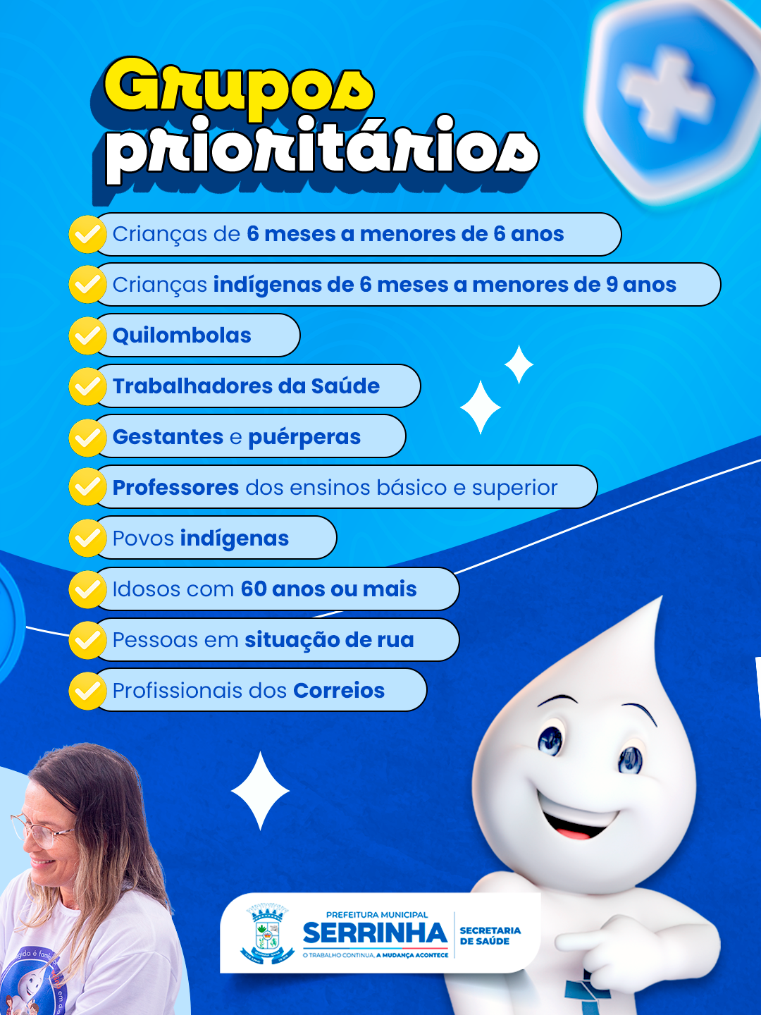 Quem faz parte do público indicado deve procurar a Unidade de Saúde mais próxima para garantir a imunização. A vacina é uma das formas mais eficazes de prevenir casos graves e diminuir a circulação do vírus, protegendo não apenas quem se vacina, mas toda a comunidade.